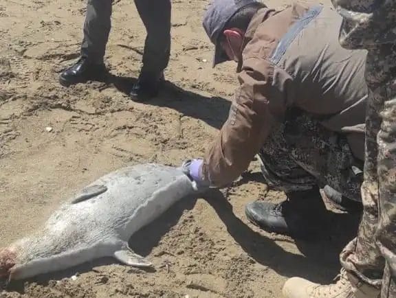 Как отмечают специалисты, накануне — 15–16 апреля — в регионе наблюдался сильный западный штормовой ветер, который мог повлиять на выброс туш на берег.