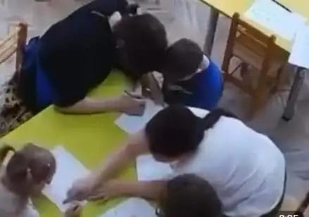 Видео с камер наблюдения опубликовала мать одной из воспитанниц. На кадрах видно, как дети выполняют задание под присмотром двух взрослых. В какой-то момент одна из воспитательниц несколько раз указывает ребенку на тетрадь, после чего бьет его по рукам и плечам.